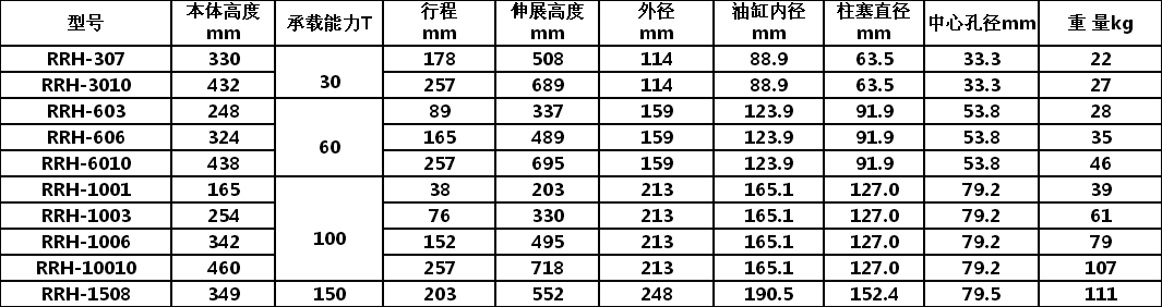RRH双作用空心千斤顶 详细参数