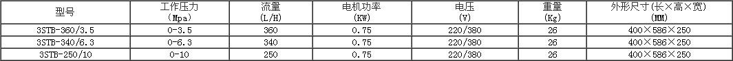 电动试压泵3STB系列电动试压泵(以下简称试压泵),适用于水或液压油介质,对各种压力容器、管道、阀门等进行压力试验,亦用于作液压能源,提供所需的压力,适合于化工、建筑、水暖、石油煤炭、冶炼造船等行业。